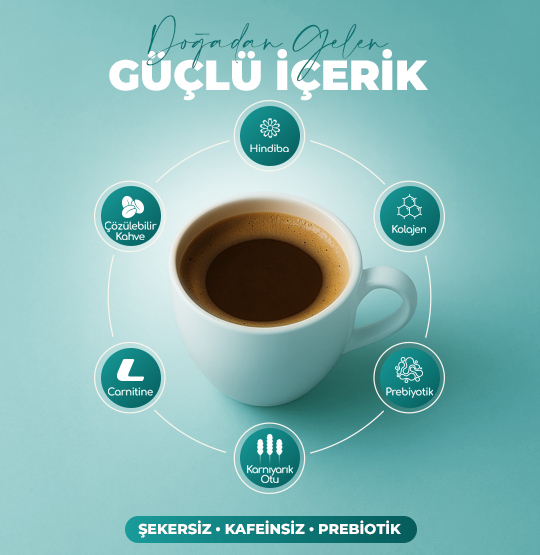 Doğal hindiba kökü özü, kolajen desteği ve bitkisel içerikleriyle formunu destekleyen, şekersiz ve katkısız özel bir kahve karışımı.